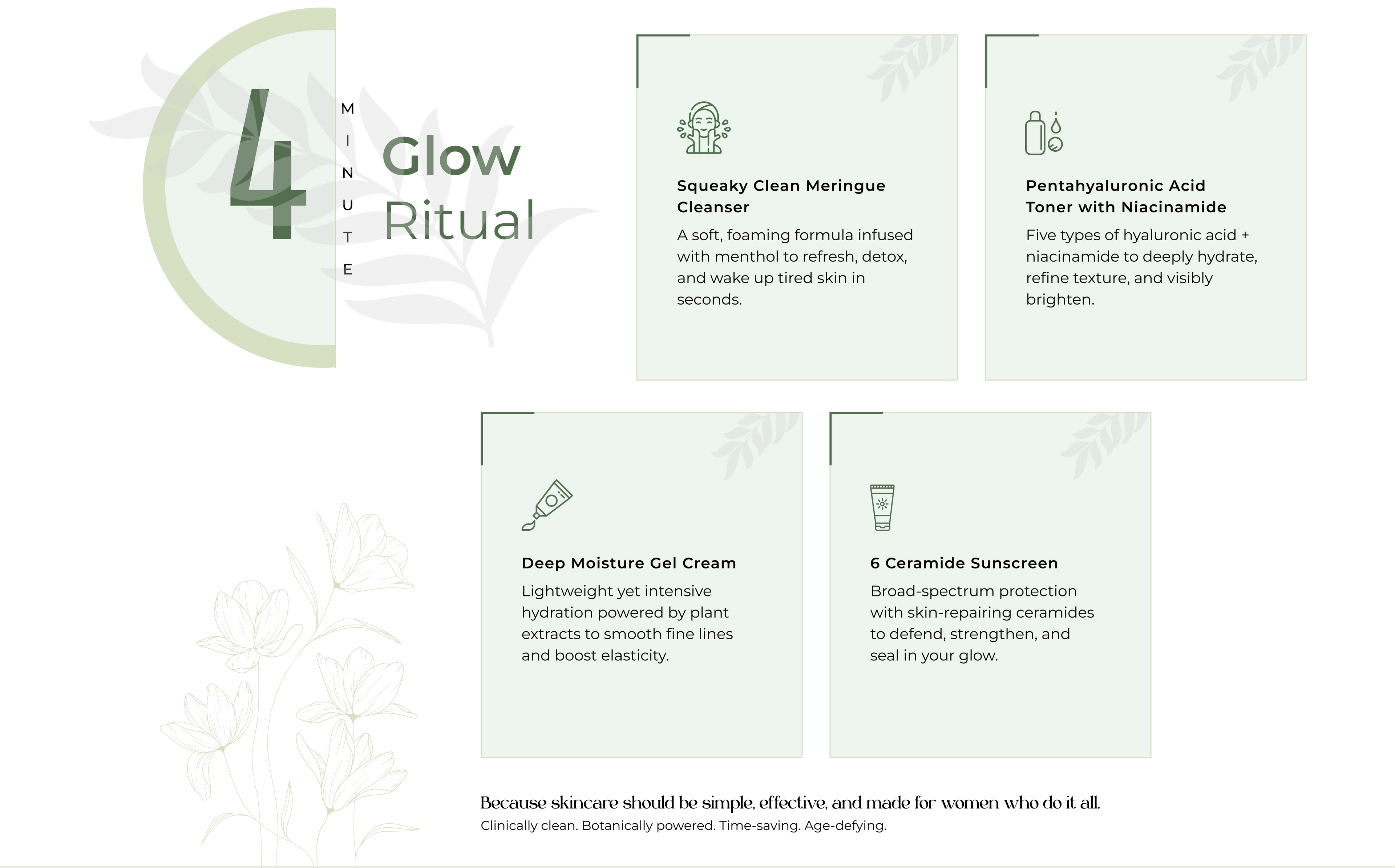 Introducing The Garden of Glow — Skinkrew’s 4-step daily ritual for busy women who want healthy, youthful, radiant skin without wasting time.